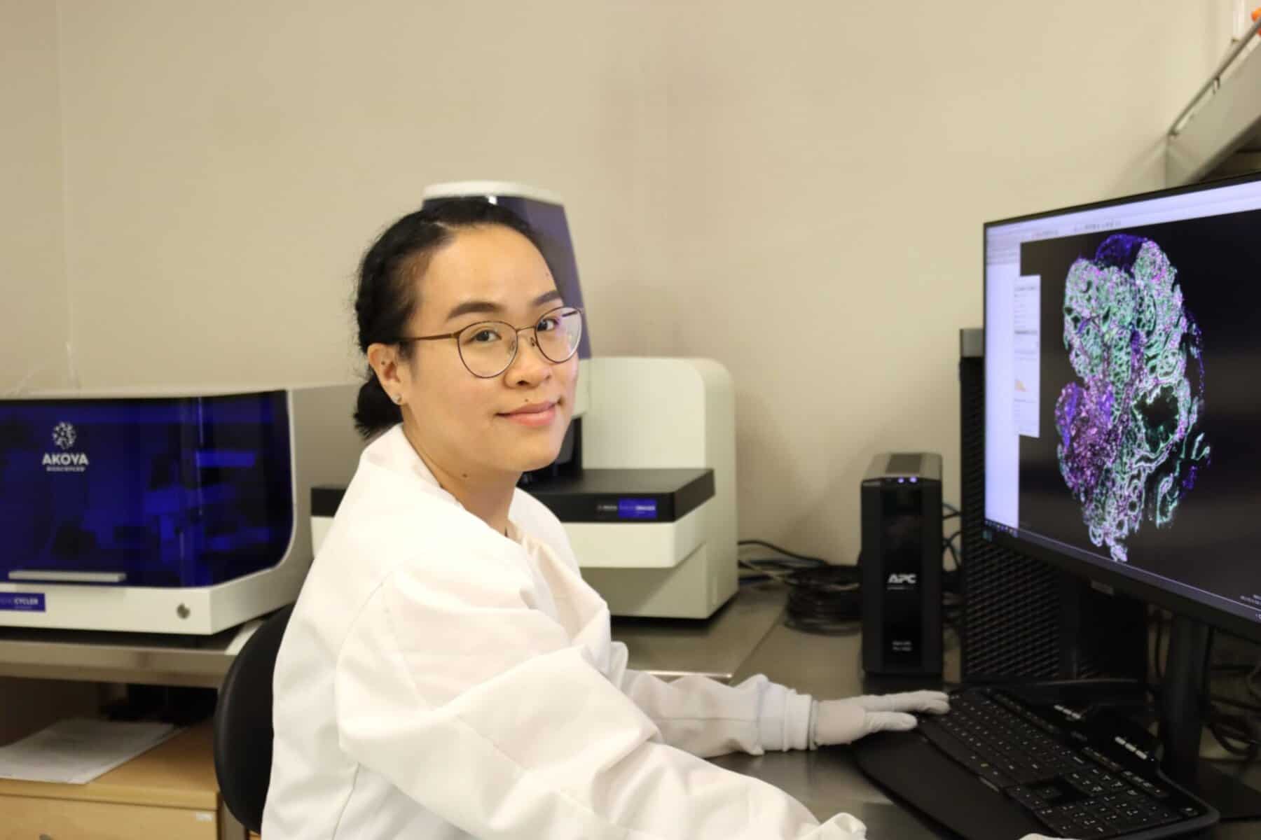 Allie in the Queensland Spatial Biology Centre (QSBC) laboratory